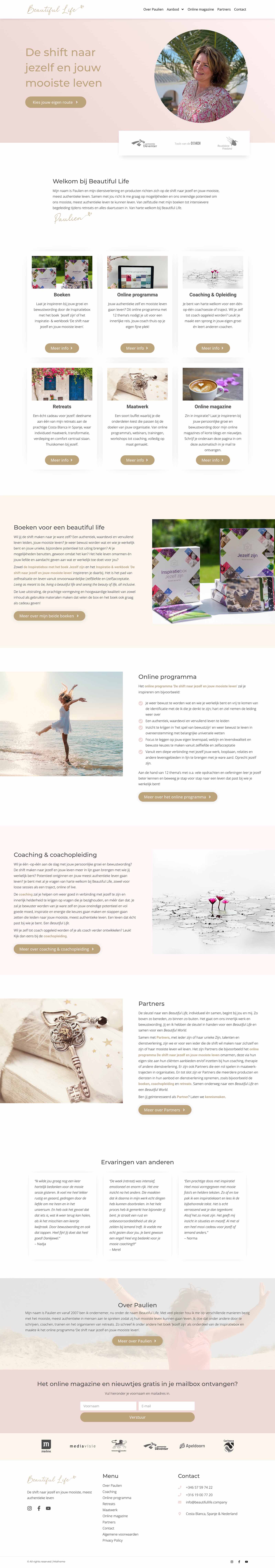 Samen met Paulien hebben we een website ontwikkeld die intuïtief aanvoelt, helder is in opbouw én uitnodigt tot actie. Het resultaat is een online platform dat spiritualiteit, persoonlijke groei en business coaching op een natuurlijke manier met elkaar verbindt.